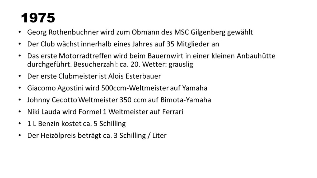 Ehemalige und aktuelle MSCler, ehemalige und aktive Rennfahrer, befreundete Motorradclubs aus dem Innviertel und auch aus Bayern, nicht zu vergessen die interessierten Gilgenberger gaben dem MSC die Ehre und füllten den Saal bis an den Rand. Alte und neue T-Shirts, abgewetzte Renfahrerkombis und MX-Outfits, große Banner mit Rennfahrerfotos, ein großes aktuelles Gruppenfoto erzeugten richtiges Motorsportflair.